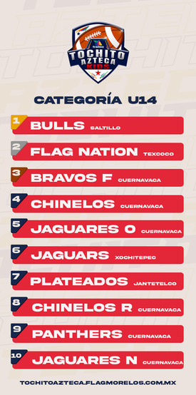 Tochito AztecaJunior Football Morelos8 oct 20221 Min. de lecturaActualizado: 30 jul 2023¡Así quedaron los Rankings de nuestra primera edición del Tochito Azteca Kids!